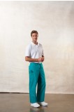 Casual unisex pant features an adjustable webbed drawstring waist, one back pocket, and a cargo pocket with a cell phone pocket inside.