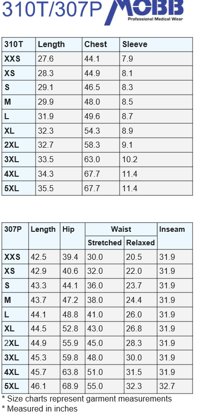 310T/307P - Unisex 8 Pocket Drawstring/Elastic Scrub Set
