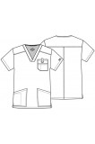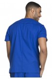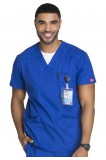 Men’s V-neck top features Dickies logo twill tape at the back neck, a double chest pocket with self strapping and a D-ring. Also featured are patch pockets, a stretchy Galaxy Blue knit interior pocket (White knit pocket on White), a back yoke, a center back seam and side vents. Center back length: 29".