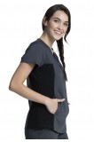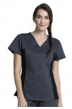 This Modern Classic fit top features stretch side panels in contrast knit which shapes and slims the body. V-neck, front and back yoke seams and hidden kangaroo pocket with in-seam side entry. Center back length: 24 1/2"
