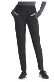 This Contemporary fit high-rise pull-on pant has a wide rib-knit waistband with interior elastic and bungee drawcords. There are five pockets: two front pockets, two back pockets with snap closure, one cargo pocket. Other features include a utility bungee loop on the wearer's left front pocket, front leg seams, and a rib-knit back panels from knee to hem. Skinny leg, 10" opening. Inseam: 28 1/2".