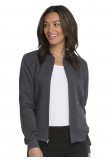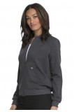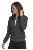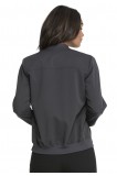 Our contemporary fit zip front jacket features two welt pockets with decorative top stitching and shoulder yokes. Perfectly located at the neck we offer a rib knit collar, rib knit cuffs and rib knit waistband for needed comfort and sleeve strapping for added fashion. Dickies tonal woven label. Center back length: 24 1/2"