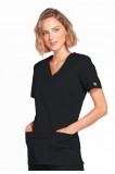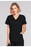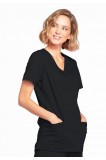A Modern Classic fit mock wrap top features front princess seams and double needle top stitch detail. Also included are front patch pockets, a right side pocket with a sectional pocket and I.D. loop, and a left side pocket with an instrument loop holder across pocket. Back princess seams and side vents complete the picture. Center back length: 27".